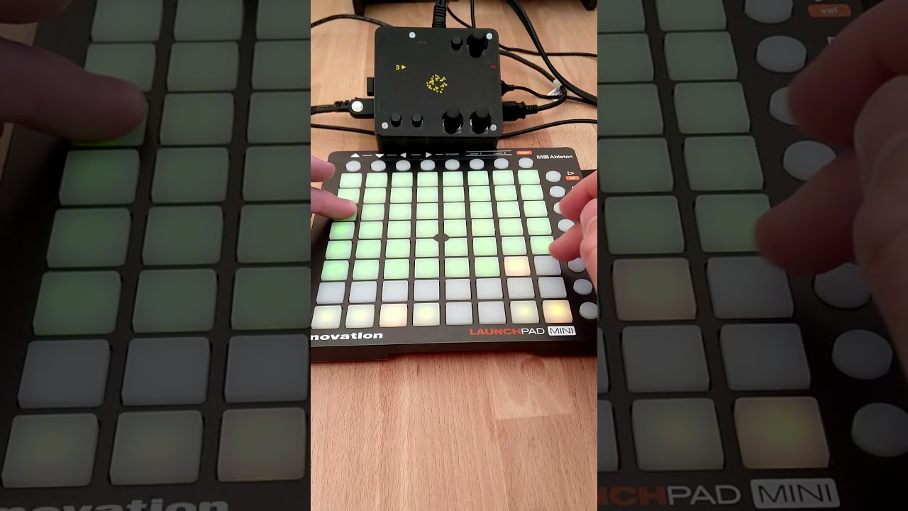 the top 6 rows fill up as notes play - the bottom right most lit pad is the most recent note.